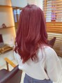 ダブルカラーで濃いめのピンク♪ブリーチは2回しました!ブリーチ毛なので褪色が早いので、褪色を防ぐのにピンクのカラーシャンプーで洗ってもらってました!カラーシャンプーをやめた後もうすーく抜けていくのが可愛かったそうでよかったです!
