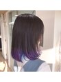 髪をしばってまとめるて内側に隠せば仕事してても大丈夫です!裾カラー/ラインカラートップを自然なベージュ系に染めて、毛先をムラサキにしました!内側にブルーも入れています!