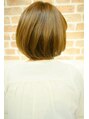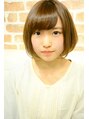 シンプルなボブにちょっとした動きをつけてふんわり感を出しました!前髪は自然に流して子供っぽくなりすぎないようにしました。カラーは赤味を抑えた、パールライムグレージュです。