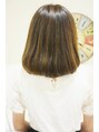 カジュアルなミディアムのボブ! ちょっぴりラフにつけたワンカールが自然で可愛いです!カラーはスモーキーアッシュでくすみ感のあるハーフモデル風の質感に。