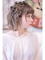 【かわいい!】と思ったらブックマークお願いします!両サイドに編みこみを2つずつつくってからハートをポイントにします。バックはふわふわにします!カラーはブリーチ後サファイアアッシュをかぶせてブルーグレーのような色味に。
