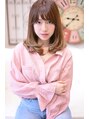 ラフなワンカールのミディアムです!シースルーバングにフェザーバングを組み合わせてます!毛先はライトブリーチしてから全体を9トーンのヘーゼルベージュでナチュラルなツヤ感を!デジタルパーマをかけるとスタイリングが楽になります♪
