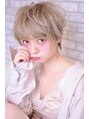 耳が少し見えるくらいのふんわりショート。カラーはダブルカラーで外国人風にしてショートでも女の子らしく。ブリーチ後、グレージュをかぶせて透明感のある色味に!ブリーチしてなければ、パーマをかけるとスタイリングが楽になります♪