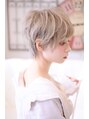 耳が少し見えるくらいのふんわりショート。カラーはダブルカラーで外国人風にしてショートでも女の子らしく。ブリーチ後、グレージュをかぶせて透明感のある色味に!ブリーチしてなければ、パーマをかけるとスタイリングが楽になります♪