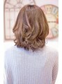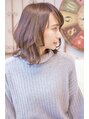 肩につくくらいのミディアムがベースです!前髪はやや長めで流す感じに。9トーンのアッシュベージュで透明感のある色味にしています!ゆるくパーマをかけるとスタイリングが楽になります!