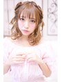 セミディの編み込みツインテールです!サイドにハートつくってアクセントにしました!13トーンのフォギーグレージュで赤味を抑えた透明感のある色味にしました。