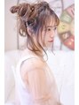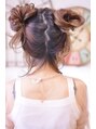 【インスタグラムID:shiko_kajihara】フロントに編み込みをつくって、おくれ毛を残したルーズなツインおだんごアレンジです!前髪はシースルーにして夏っぽく!10トーンのスモーキートパーズで透明感のあるアッシュベージュにしました!