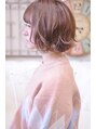 【インスタグラムID:shiko_kajihara】ショートボブの毛先にカールをつけた、ゆるふわなボブです!前髪はシースルーパッツンで束感のあるパッツンにしました!カラーは11トーンのグレージュブラウンで透明感のあるベージュです。