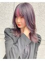 ラベンダー色のベースにワンポイントで前髪にピンクを入れた少しデザインのあるカラーです♪鮮やかなピンクでもワンポイントで攻めすぎ感なく色を楽しめます♪全体的にブリーチ必須のカラーです!