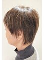ショートレイヤー。全体的にシャギーでザックリしたショートスタイル。イノアカラーとハイライトの組み合わせで立体的に動きをつくる。イノアカラーとハイライトの組み合わせ。ファイバープレックス前処理で髪にハリを。