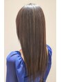 ロングストレート。髪質改善サイエンスアクアで前処理し、イノアカラーとハイライトの組み合わせ。前処理にはメタルDX も組み合わせ、更に後処理にケラスターゼカクテルトリートメント施術して、髪にたっぷり栄養を。