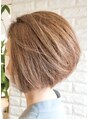 前下がりグラデーションボブ。襟足いっぱいからアゴまで前下がりのショートボブスタイル。後頭部に丸みを出し、頭の形が良く見えるように。明るいイノアカラーで軽さを強調。