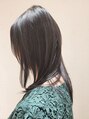 ミディアムレイヤー。サイドからバックにかけラウンドさせたレイヤースタイル。サイエンスアクアで髪質改善した後、メタルDX 、イノアカラー、ケラスターゼカクテルトリートメントを組み合わせて、髪を傷めずにカラーリングして、髪は艶々サラサラに。