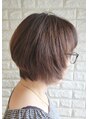 グラデーションボブ。襟足はスッキリさせ、後頭部は丸くして頭の形が良く見えるように。サイドは小顔効果のある長さに設定。イノアカラーメタルDX の組み合わせで髪は艶々サラサラに。