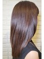 ロングレイヤー。サイドからバックにかけラウンドさせたローレイヤー。オイルグロスカラーのイノアで、髪は艶々サラサラに。イノアカラーは圧倒的な艶感。