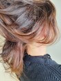 セミディレイヤー。サイドからバックにかけラウンドさせ、ややくびれを作ったレイヤースタイル。イノアカラーダスティピンクと、インナーレッドの組み合わせ。ファイバープレックスで前処理、ケラスターゼカクテルトリートメントでアフターケア。