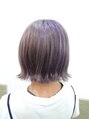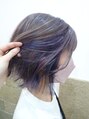 ブリーチを2回して全体にパープルシルバーをいれてイヤリングカラーで濃いブルーをアクセントにいれました。全体のブリーチが難しい方はイヤリングカラーだけでもいれるとアクセントになって可愛いです!