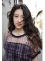ロングヘアウェーブのスタイル。柔らかなカールがクールな印象をソフトに彩ってくれます。【京都美容室/河原町/四条/三条/ロングヘア/ロングカール/カール/カールヘア/カーリーヘア】