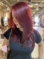 ブリーチなしのダブルカラーで作るレッドヘアカラー。ブリーチを使わないので最小限のダメージで幅の広いカラーを楽しむことができます◎
