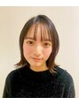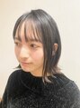 毛先を外ハネにしたくびれシルエットで、大人っぽいミディアムスタイルです。透け感をプラスしたシースルーバンクで旬顔に。