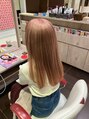 オレンジベージュのカラーを生きるように、フェイスラインに透明感を出したパーマがポイント。ロングでも重く見えずすっきりした印象に仕上がります。幅広い年代に人気のスタイルです。【EARTH●●店】