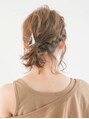 サイドの髪をカチューシャを作るように編み込み、後ろの低い位置でまとめたアレンジヘア。顔周り、首回りは、後れ毛を細かく引き出し抜け感を出すのがポイント。お出かけの際のカジュアルアレンジもEARTHにお任せください。【EARTH●●店】