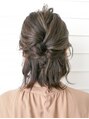 カラーでハイライトを入れるのがポイント。ハイライトを活かしたヘアアレンジにすることで立体感を出したハーフアップスタイル。大人可愛いアレンジスタイルもEARTHに是非お任せください。