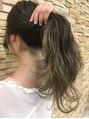 細めのハイライトを沢山入れてそれにプラスで毛先はブリーチで抜きグラデーションにしてます!ベースはシルバーグレーで透け感が出る様に染めてます!