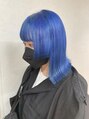 お客様をブリーチして、ヘアマニキュアでビビッドなブルーにしました♪ヘアマニキュアはカラー剤で染めるよりもビビッドな発色にできて色も長く持ちます♪より個性を出したい方にオススメです♪しっかりフローディアトリートメントでケアし、艶を出しました♪