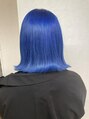 お客様をブリーチして、ヘアマニキュアでビビッドなブルーにしました♪ヘアマニキュアはカラー剤で染めるよりもビビッドな発色にできて色も長く持ちます♪より個性を出したい方にオススメです♪しっかりフローディアトリートメントでケアし、艶を出しました♪
