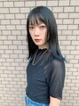 ベースカラーはブルーブラック♪暗髪でもブルー強めでオシャレなデザインカラーにしました。裾カラーは毛先部分をブリーチ後にブルーをのせてオンカラー♪ブルーなので上品かつインパクトも☆裾カラー気になってる方にオススメです♪