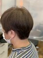 襟足スッキリの耳だしショートスタイル。ノンダメージカラーで最小限のダメージでカラーが出来るので、ツヤをキープ。乾かすだけで簡単セット。