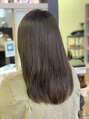 抜群の透け感のブルーアッシュ。やわらかさとクールさを兼ね備えたブルーアッシュは大人気のカラーです。カクテルトリートメントで髪の芯から補修、強度を上げ、ツヤサラまとまる髪へ。