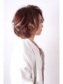ボブスタイルで、伸ばしてる途中でも完成度が高いスタイル!女性に幅広く″似合う″スタイルなのでオススメですよ! シールエクステは顔まわりにピンク系を1、2本つけサイドにベージュ系のハイライトをランダムにいれ動いてなじむようにつけました!