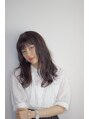 インナーブリーチされた髪に全体にレッド+ピンク+ラベンダーを混ぜたカラーで透け感のあるレッドヘアーに。顔周りのみたっぷりとレイヤーを入れて動きとボリュームを調節しています。