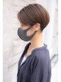 【気に入って頂いたスタイルは、ブックマークをしてご提示ください】お客様を撮影。バングは少し長めに残しバックEDGEをきかした刈り上げのエアリー耳掛けエッジショートです。カラーリングはローライト、ハイライトを入れて毛流れを強調しました。