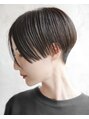 襟足をグラデーションで刈り上げながら、後頭部に繋がるナチュラルな丸みを作っています!サイドはフラットなラインで、センターパートハンサムショートになります。