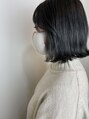 ブリーチを活かして暗くても透明感のあるネイビーブルーに。耳周りはトーンは暗くせずグレーにしました。カットは重さを残した韓国風ボブ。顔周りもこだわってカットしています。