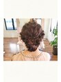 表面は波ウェーブにしバックは三つ編みを丸めてシニオンにしましたサイドの毛はくるくるねじりながらバックまで持って行き一緒にまとめていますねじった毛も少しほぐしてあげるだけでぽこぽこと可愛い動きになります