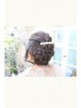 編み込みアップスタイルですトップはクルリンパにしトップ以外は編み込みでまとめています少しほぐしてあげると動きが出てかわいいですよ!