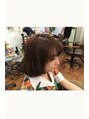 前上がるに切り上げふんわりバルーンボブになるようにカットしました表面のみ段を入れて巻いたときに動きが出るようにしていますカラーはベージュブラウンの9レベルで染めていますw
