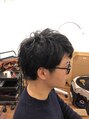 サイドの耳回り三角ベースは刈り上げにしかぶせるツーブロックスタイル長さは少し残してその分そぎばさみでたっぷり削いで軽さを出しています。軽いスタイルは動きが出てくれるのでおすすめです。