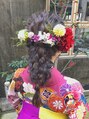 【お客様スタイルです】 ふんわりトップは波ウェーブにし、みつ編みをさらに編んだ編みおろしスタイルです。袴アレンジ以外でもパーティースタイルでも編みおろしは人気スタイルです。