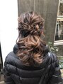 お客様スタイルですトップはふんわりベースを巻き両サイドを編み込みまとめたハーフアップです。飾りがなくてもおしゃれで華やかなスタイルです。