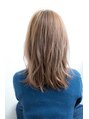 やや前下がりにカットした切りっぱなしスタイルあえてカットラインを残す事で毛先に厚みがでてオシャレ度UPカラーは全体にハイライトを入れる事で透明感が増します