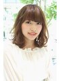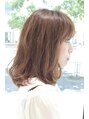 鎖骨ラインのミディアムカールスタイルです。カットはシンプルなワンレングスですが顔まわりとトップにレイヤーを入れて動きが出るようにカットしています。アイロンで巻いた時にレイヤー部分にランダムな動きがつきます。