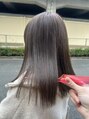 ヘアカラーはいつもとイメージを変えたいという事で、最近は赤系統のカラーが多かったので、寒色系のカラーでさせていただきました。ミルボン アディクシーカラーの新色リーフパールで染めました。