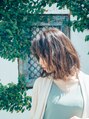 全体的に大きめのウエーブを作りふわっとさせエアリー感ミディアムスタイルです。センターパートで分けているのでガーリーになりすぎない大人の女性感をだしています。 春夏にピッタリなさわやかなスタイルです☆