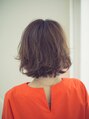 伸ばしかけの方にもおすすめなふんわりボブ。トップには少し段を入れているのでボブシルエッットは崩さずにふんわりとした質感に仕上げています。とろみカラーでやわらかな質感と前髪はシースルーバングで抜け感を出しています。