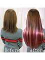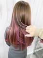 ピンクブラウンにピンク×ラベンダーのメッシュを全体に入れました★